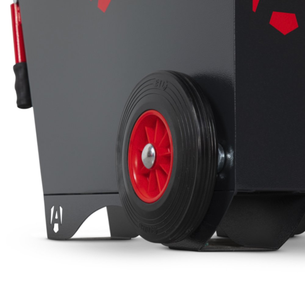 The BarroBox is also designed for safe and easy handling. Gas struts provide smooth lid opening, while ergonomic folding handles make movement effortless, even when the unit is full. Its large solid wheels handle rough ground with ease, and forklift skids offer another option for transport. Secure, mobile and practical, the Armorgard BarroBox BB2 is the perfect tool vault for tradesmen on the move.