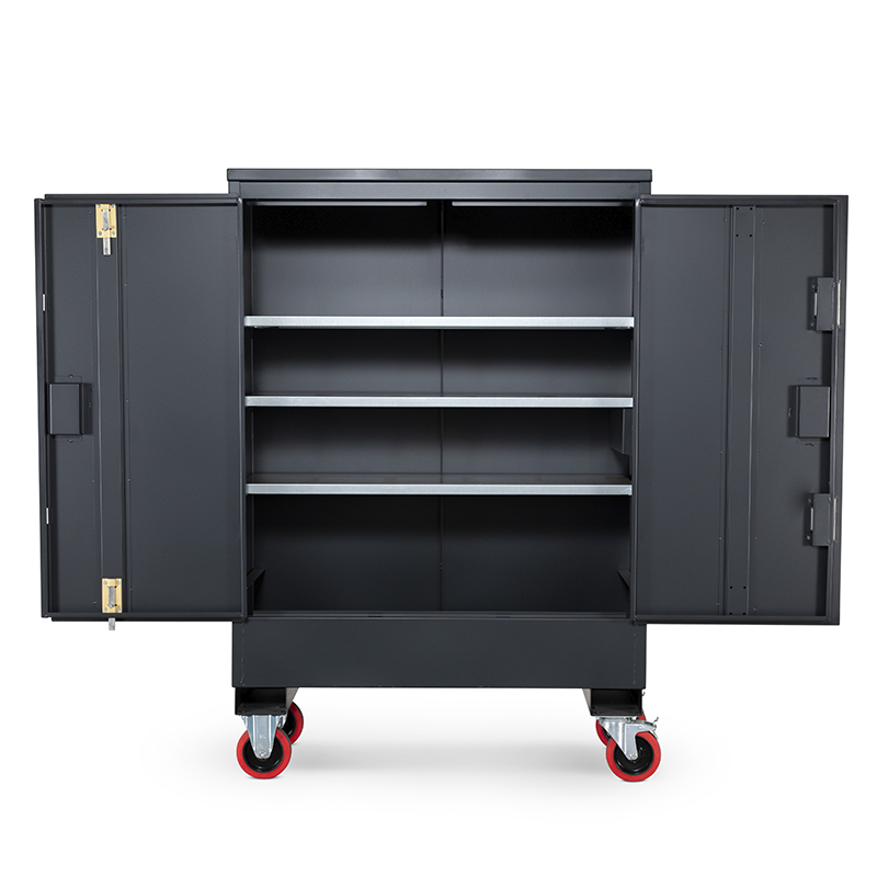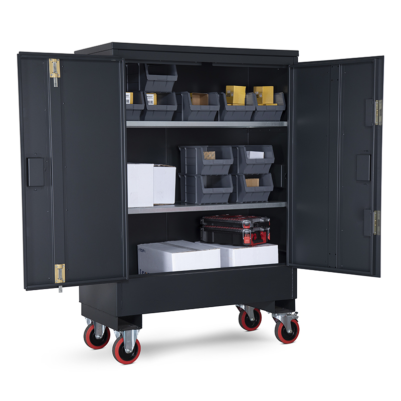 Inside, the FC3 features reinforced removable shelves, a base compartment for larger tools, and 15 lift-out fittings bins for sorting small components. Moving it around site is effortless thanks to heavy-duty castors and forklift skids, ensuring easy mobility wherever you need it.
