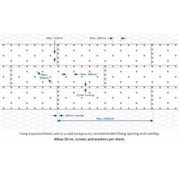 Stainless steel expanded metal lathing sheets (Square Metre m² 1.75) for external plastering, damp environments, and fire protection applications.