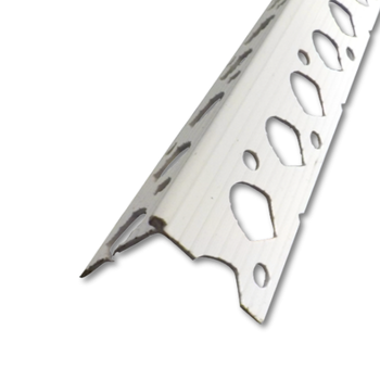 uPVC angle bead for forming straight, reinforced plaster corners. Ideal for external and damp-prone environments.